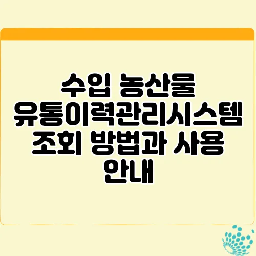수입 농산물 유통이력관리시스템은 수입된 농산물의 유통과정을 기록하고 관리하는 시스템입니다. 이를 통해 소비자는 제품의 출처와 이동 경로를 확인할 수 있으며, 농산물의 안전성을 높이는 데 기여합니다.