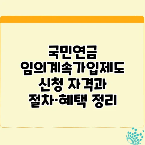 국민연금 임의계속가입제도는 특정 사유로 국민연금 가입이 중단된 후에도, 신청을 통해 일정 기간 동안 연금을 지속적으로 납부할 수 있게 해주는 제도입니다. 이 제도를 통해 가입자는 연금 수급권을 유지하고 강화할 수 있습니다.