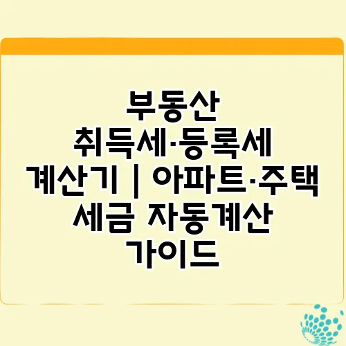 부동산 구매를 고려하고 계신가요? 아파트나 주택을 구입할 때, 반드시 알아야 할 세금이 바로 부동산 취득세와 등록세입니다. 많은 사람들이 세금 계산에 어려움을 느끼곤 하는데요, 오늘은 부동산 취득세·등록세 계산기를 통해 쉽게 계산할 수 있는 방법과 아파트와 주택 관련 세금에 대한 가이드를 제공하겠습니다. 저희의 목표는 독자 여러분이 세금 문제를 이해하고, 불필요한 걱정을 덜 수 있도록 돕는 것입니다.